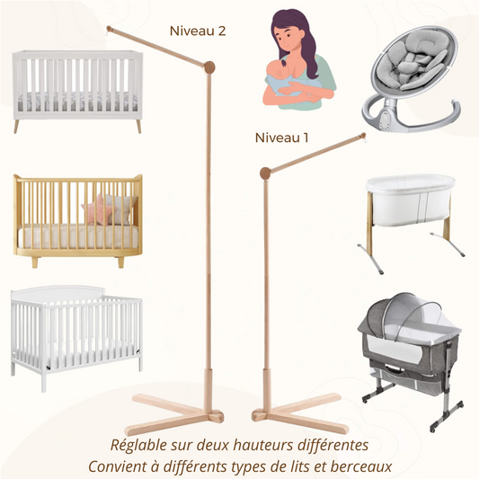 Bras mobile réglable en bois de hêtre pour lit bébé et berceau